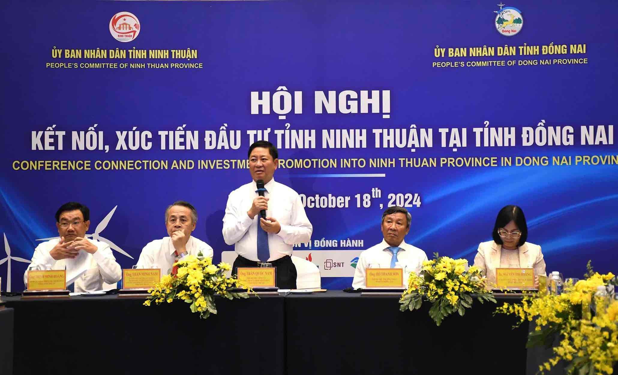 Ngày 18/10, tại TP. Biên Hòa (Đồng Nai), UBND tỉnh Ninh Thuận đã tổ chức hội nghị kết nối, xúc tiến đầu tư với sự tham gia của hơn 100 doanh nghiệp lớn tại tỉnh Đồng Nai và khu vực phía Nam. Đây là bước đầu tiên để tỉnh Ninh Thuận kêu gọi đầu tư vào các lĩnh vực năng lượng, năng lượng tái tạo, hạ tầng, du lịch, logistics… được xem là tiềm năng của Ninh Thuận.